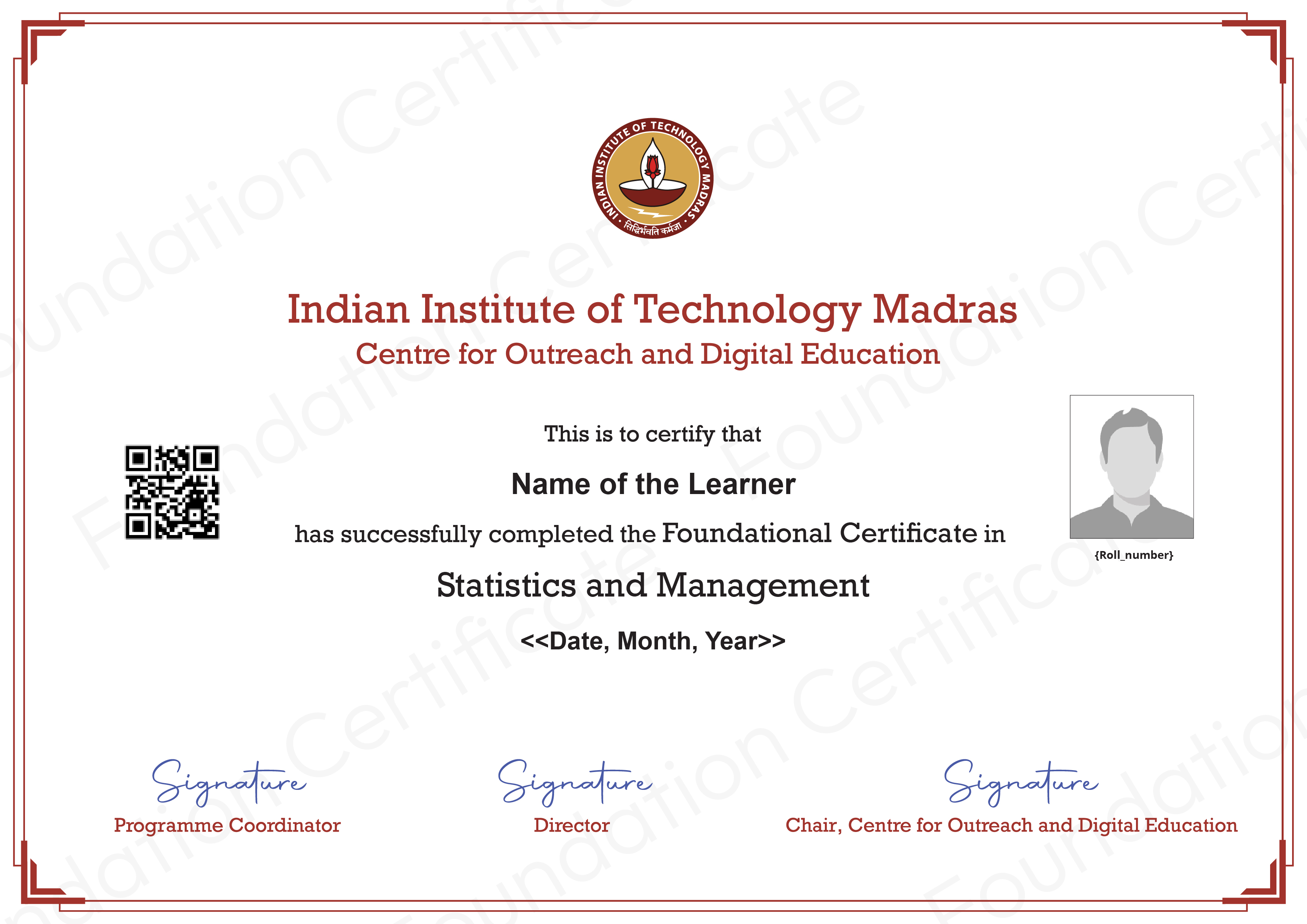 and credits earned, the learner can receive a Foundation Certificate from IITM CODE (Centre